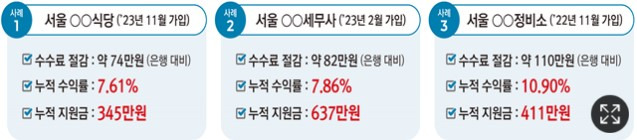 서울 중구에서 10명의 직원을 둔 음식점 사장님은 푸른 씨앗 도입 후 "퇴직금 적립에 대한 부담이 정말 컸었는데, 정부 지원 덕분에 한결 마음이 편해졌어요. 직원들도 퇴직금이 제대로 쌓이는 걸 보더니, 더 열심히 일하는 것 같아 저도 기분이 좋습니다."라며 환하게 웃으셨습니다.