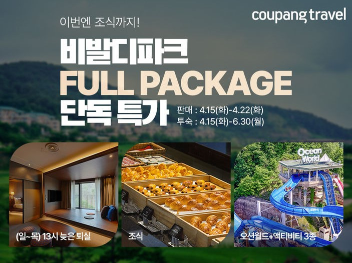 쿠팡 관계자는 “봄철 나들이와 5월 황금연휴, 가정의 달 여행 수요를 겨냥해 고객들이 실속 있게 비발디파크를 즐길 수 있도록 단독 프로모션을 기획했다”며 “숙박부터 놀이, 식사까지 모두 포함된 알찬 패키지를 통해 고객 만족도를 높이고, 쿠팡트래블만의 차별화된 혜택을 선보이겠다”고 전했습니다.