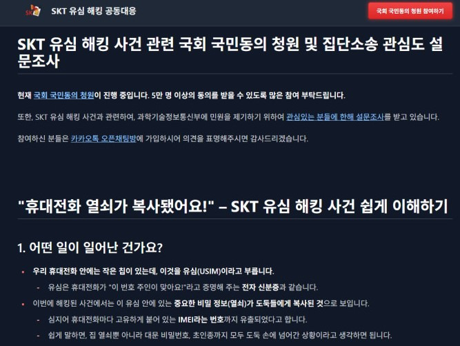 이는 우리의 디지털 권리에 대한 정당한 요구이며, 더 안전한 디지털 세상을 만들기 위한 간절한 염원입니다. SK텔레콤은 이번 사태를 통해 고객의 신뢰를 잃지 않도록 모든 노력을 기울여야 할 것이며, 정부 또한 실효성 있는 대책 마련을 통해 국민들의 디지털 안전을 보장해야 할 것입니다.