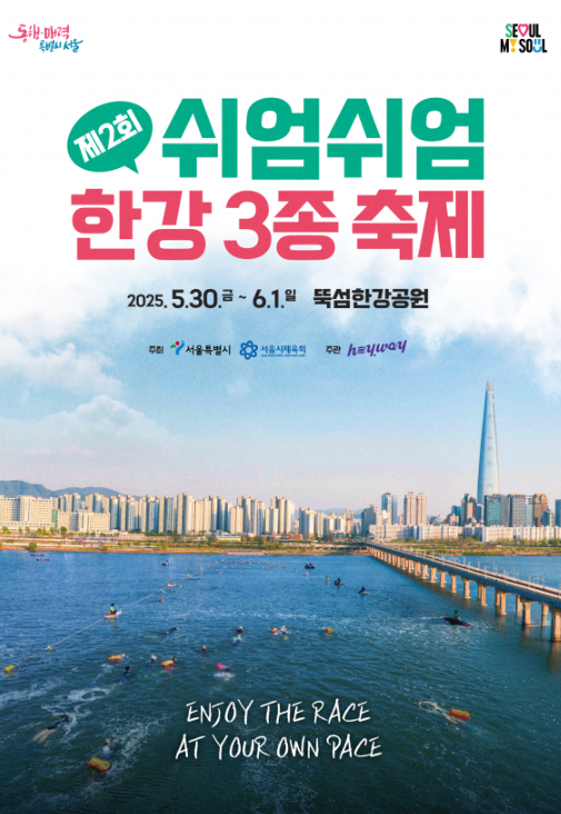 정신 바짝 차리고 쉬엄쉬엄 즐겨봐! 한강 3종 축제, 서울의 여름을 물들이다! 따스한 햇살 아래, 푸른 물결이 넘실대는 한강에서 특별한 여름 추억을 만들 기회가 찾아왔습니다! 바로 제2회 쉬엄쉬엄 한강 3종 축제가 오는 2025년 5월 30일부터 6월 1일까지 뚝섬한강공원에서 성대하게 펼쳐지는데요. 이름처럼 부담 없이, 그러나 즐거움은 가득 채울 수 있는 이 축제는 사랑하는 가족, 소중한 친구, 설레는 연인과 함께 하루 종일 웃음꽃을 피우며 잊지 못할 시간을 선사할 것입니다.