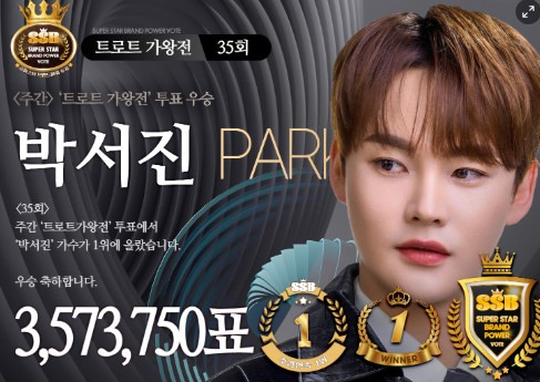 지난 5월 14일부터 21일까지 일주일간 진행된 치열한 투표에서 박서진은 팬들의 뜨거운 사랑과 지지를 바탕으로 압도적인 표차를 기록했습니다. 특히 35회 트로트 가왕 부문에서는 총 1천만 표가 넘는 투표수 중 350만 표 이상을 싹쓸이하며 32.6%라는 경이로운 득표율을 달성했습니다. 이는 단순한 1위를 넘어, 박서진이 명실상부 대한민국 트로트계의 독보적인 아이콘임을 증명하는 결과입니다. 그의 감성적인 보이스와 무대 장악력은 이미 많은 이들의 마음을 사로잡았지만, 이번 결과는 그 파급력이 얼마나 대단한지 여실히 보여줍니다.