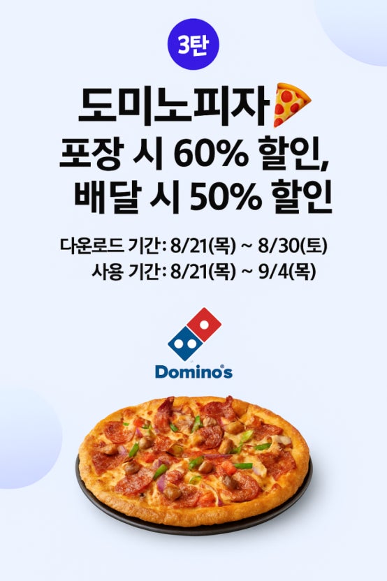 - 할인 방식 : 도미노피자 온라인 주문 시 쿠폰 적용